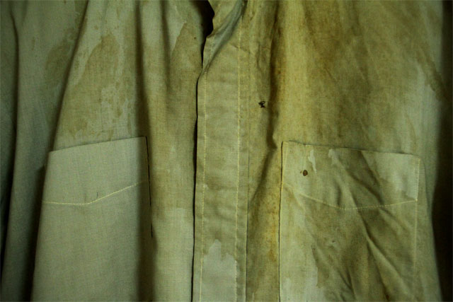 Un agujero de medio centímetro de diámetro en la camisa que monseñor Romero utilizaba en el momento de su asesinato señala el punto por donde entró la bala del fusil calibre 0.22 que le quitó la vida. La prenda ensangrentada cuelga de una percha en el museo.