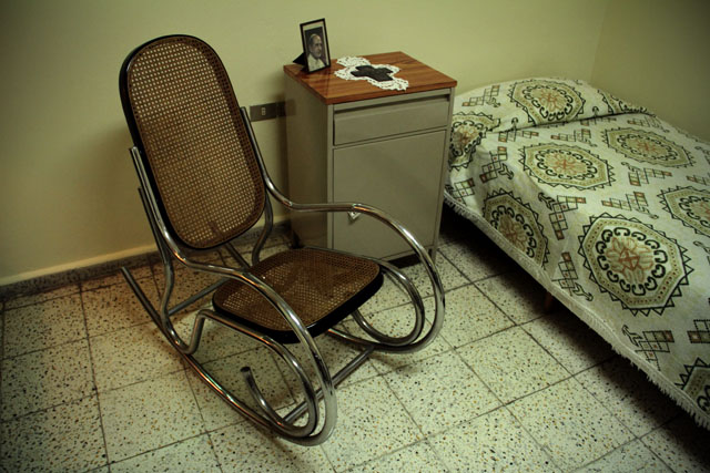 | Una mecedora, una pequeña cama y una mesa de noche son los muebles del dormitorio de monseñor Romero. |